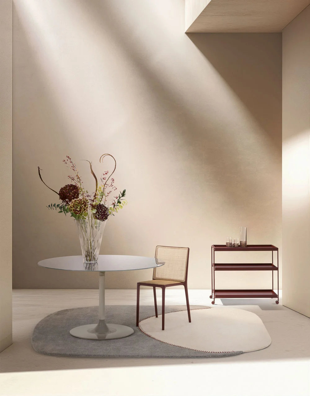 Endless colour, playing with new shapes and sizes. The family of "jewel" tables expands with THIERRY XXL, designed for dining in oval and round versions, completing the series of THIERRY BISTROT, designed for lounge bar atmospheres.