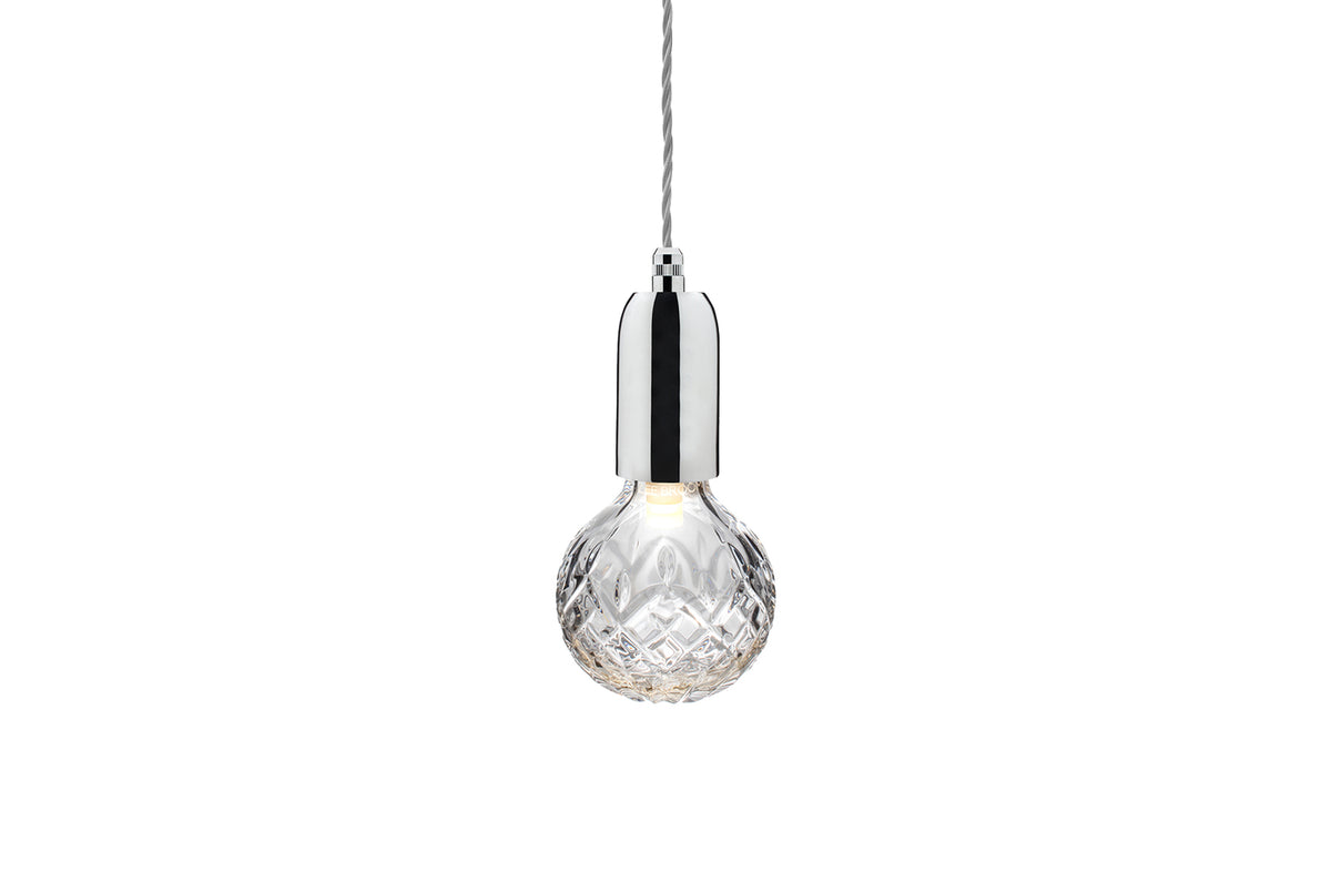 Taking inspiration from the delicate craftsmanship of crystal cutting, Crystal Bulb combines industrial influences with decorative qualities, transforming the everyday light bulb into a beautiful ornamental light fitting. Each lead Crystal Bulb is handcrafted using traditional techniques and hand cut with a classic crystal pattern inspired by those found on traditional whiskey glasses and decanters.