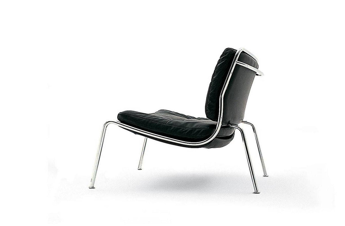 Frog: a minimalist and lightweight chair for a summer look. For those who want a warmer setting, Frog is available in the padded version. Designed with a tubular steel frame painted with epoxy powders or chromed, the outdoor use version is in AISI 316 stainless steel with satin finish. The weave is available in the following materials: trim in natural and coloured rawhide (black, brown), hemp cord, profile in transparent and coloured PVC. The padded armchair has seat and back in polyurethane foam and acrylic fibre cover, with felt, leather or fabric upholstery. The covers of the fabric version are fully removable.