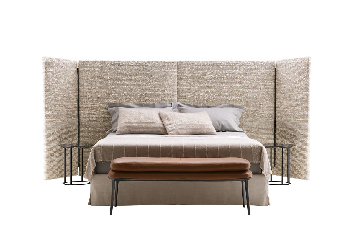 The new Maxalto Dike bed stands out for its unusually-sized headboard which is a distinctive element that creates a new furniture category. Antonio Citterio imagined two panels each 2 meters high and 125 cm wide, ending with two mobile elements, anchored by an elegant full-height hinge.