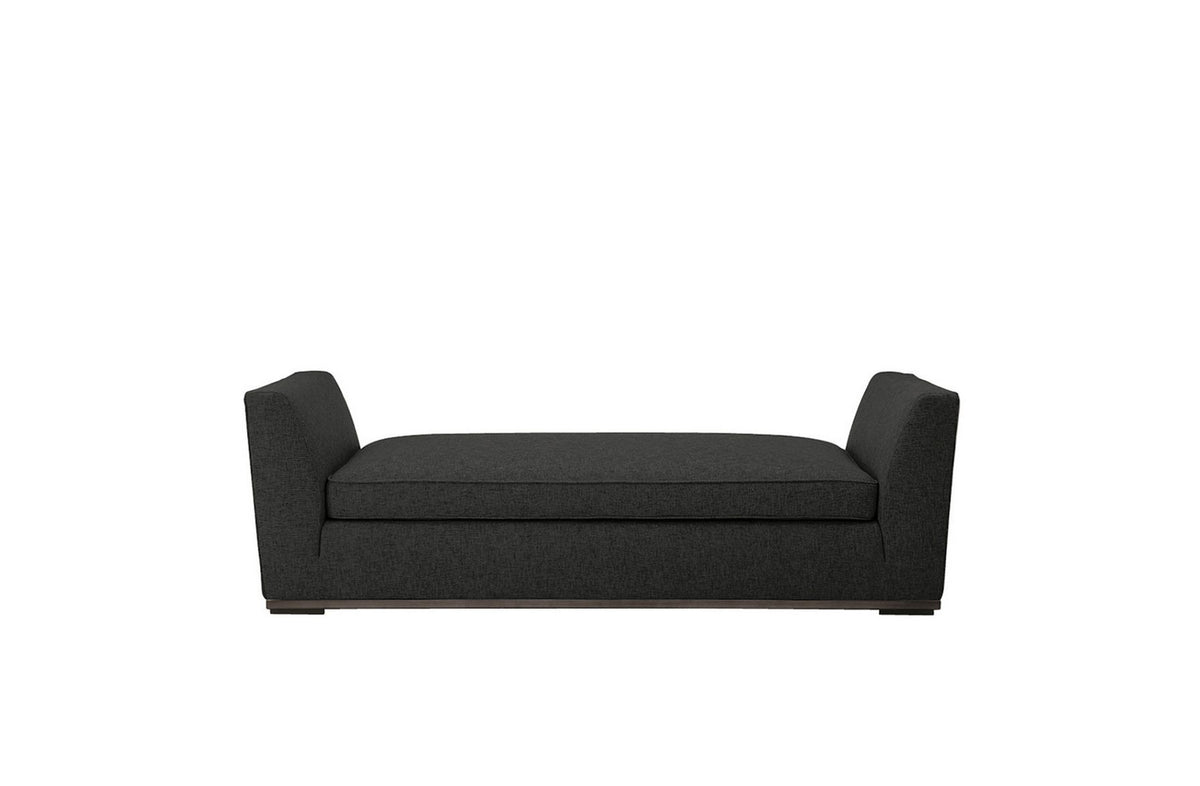 The dormeuse for mid-room placement and the ottoman are elements that go with several sofas and armchairs of the Apta collection thanks to a detail present on many of the items: the lower edge in bronzed nickel painted steel.