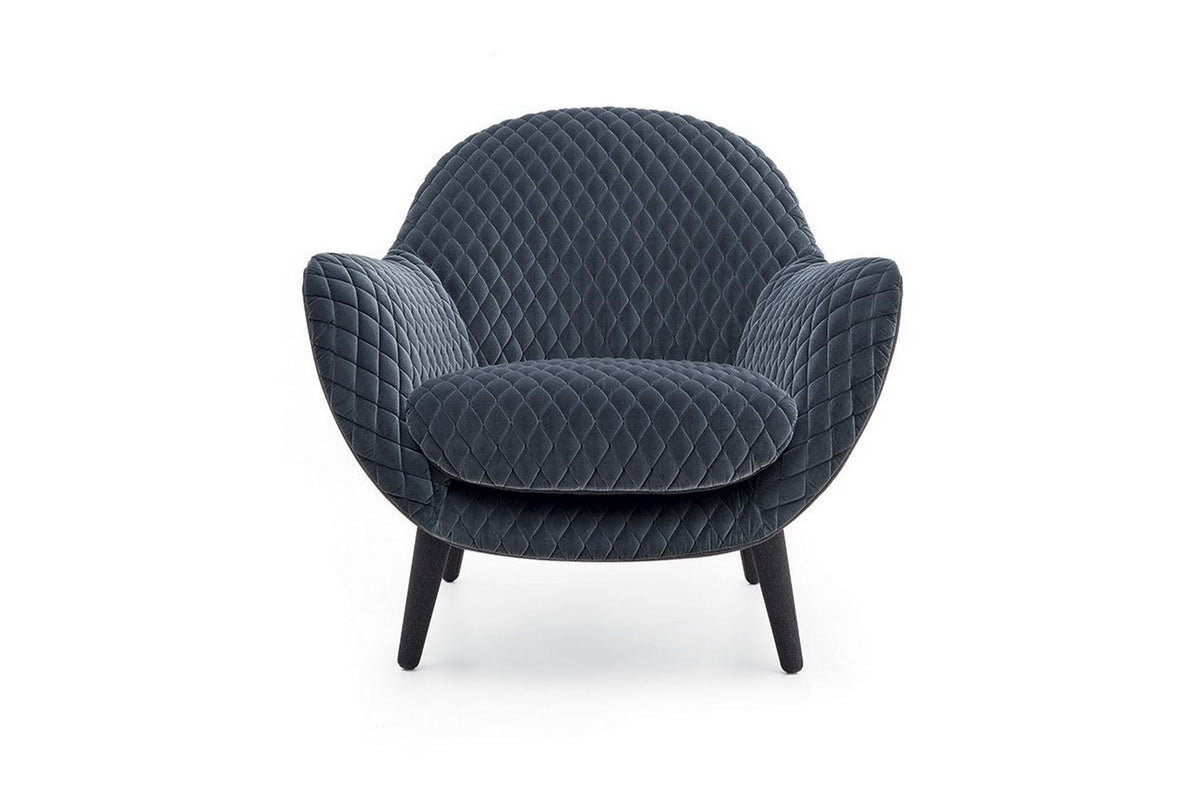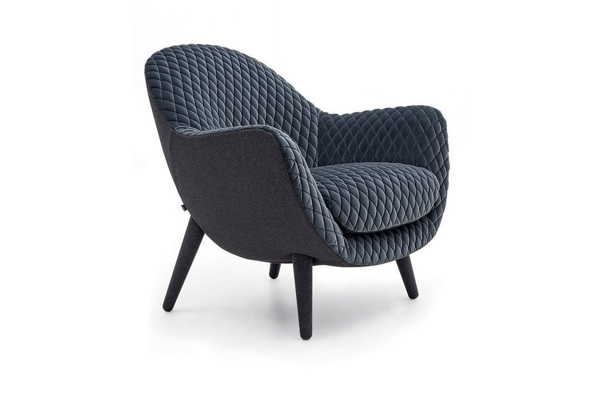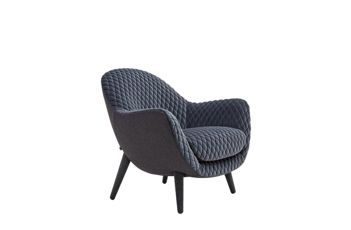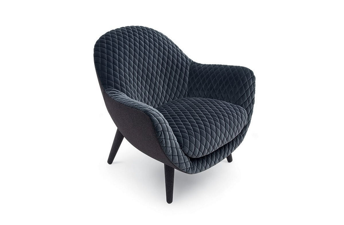 A continuous body, an enveloping seat, and an image strongly characterised by a matelassè finishing: Mad Queen plays on exclusive artisan details to add to the collection that began with Mad Chair in 2013. A low armchair with soft, continuous lines and a reassuring image, defined by a ‘protective body’ and by robust diagonal wooden legs.