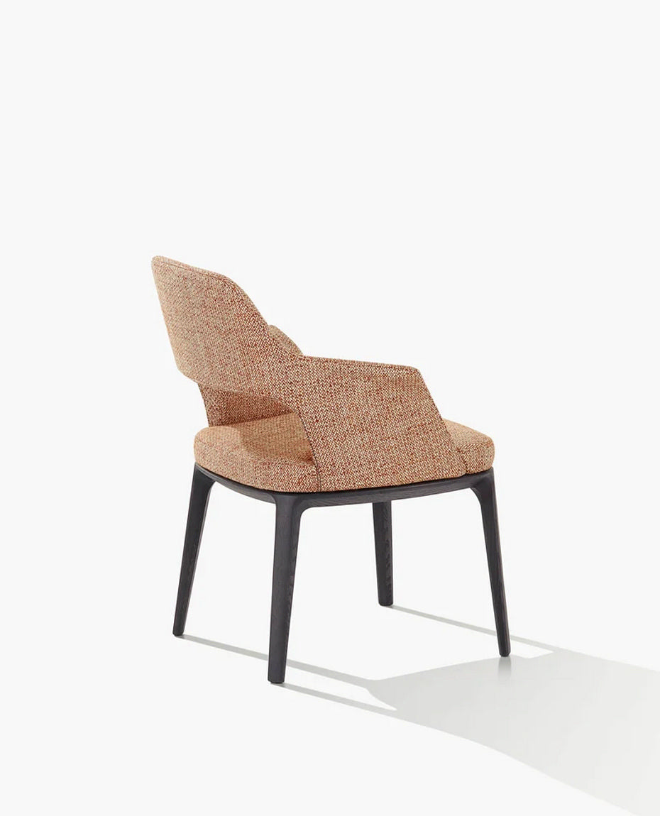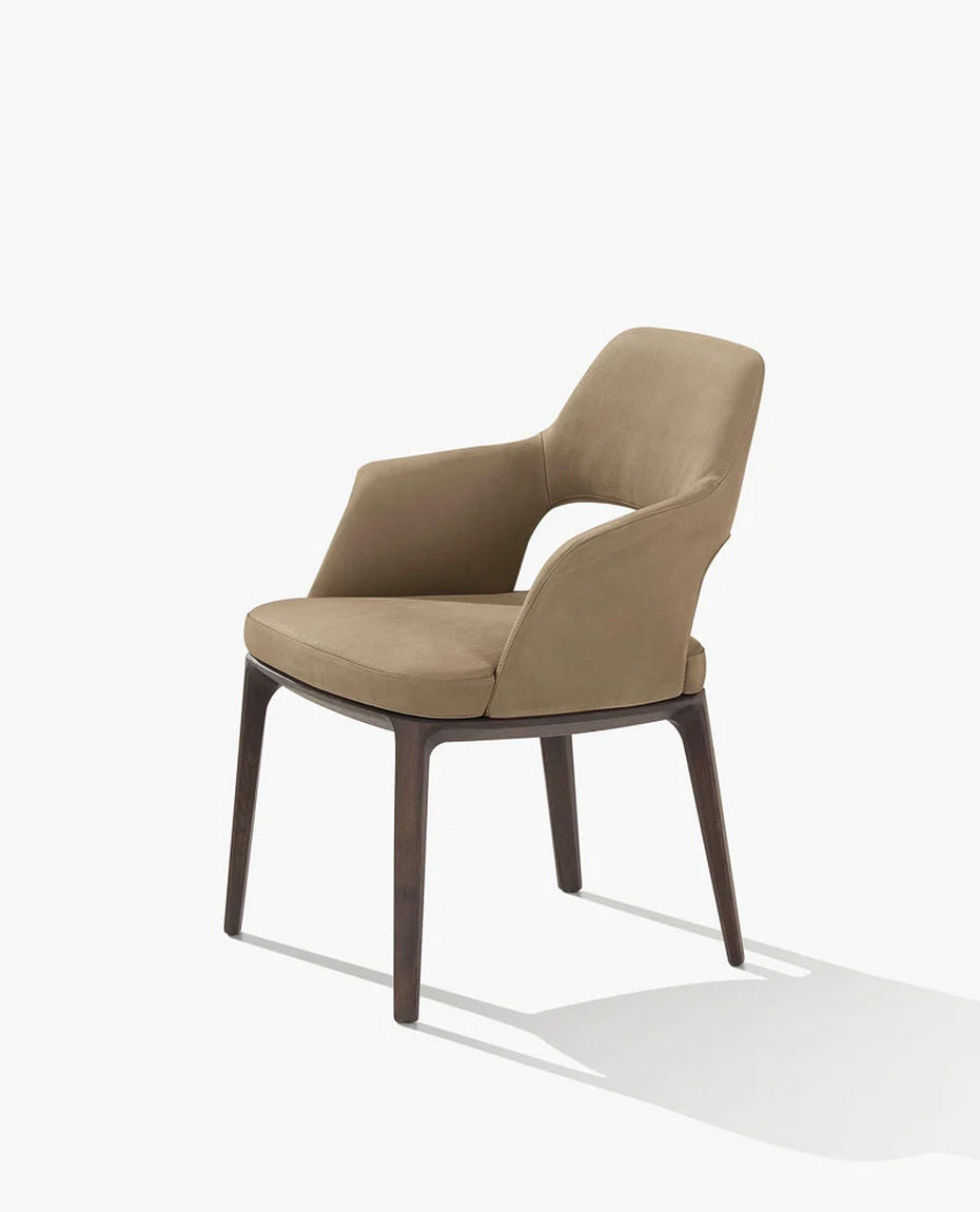 The Sophie Lite collection is an evolution of the Sophie chair and stool with shaped backrest chair, that makes it more lightweight. The finishing touches remain the same with solid wood frame and fabric or leather upholstered seat, as is also the case with the generous, comfortable structure.