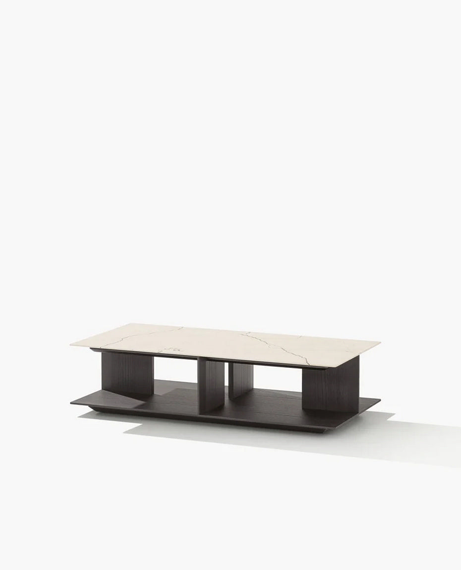 Westside is the polymorphic system that reinvents the living area experience: a group of essential modules which, thanks to a deft play of combinations, presents itself as a small private island with classic angular configuration or wide deconstructed, welcoming modular sofa. Expression of absolute comfort, it suits any context: from residential to public areas and hospitality. A refined balance of materials, shapes and different heights characterizes the Westside coffee tables collection.