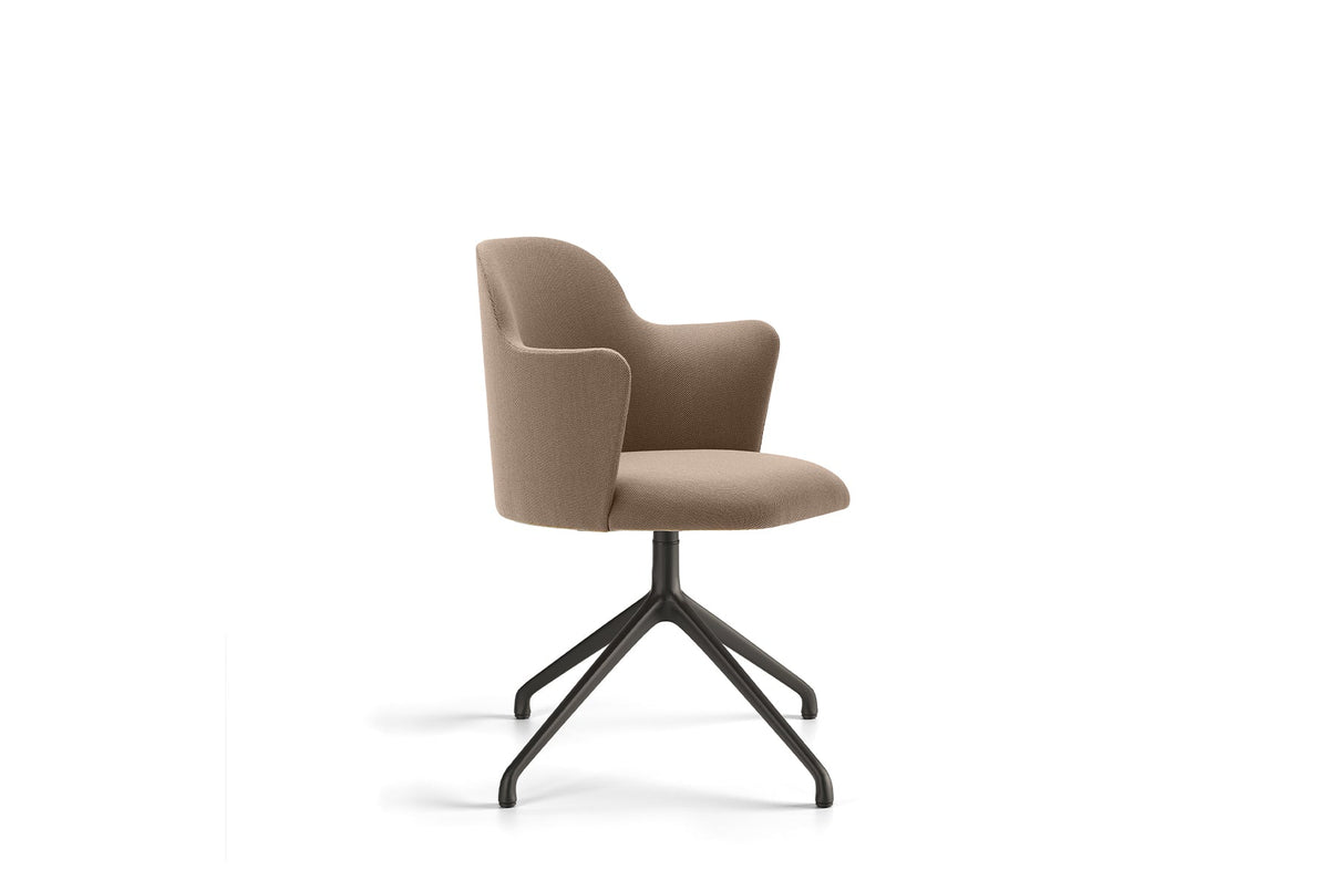 Calibrated steel swivel structure powder coated in thermoreinforced polyester in white or black. Fabric or leather.